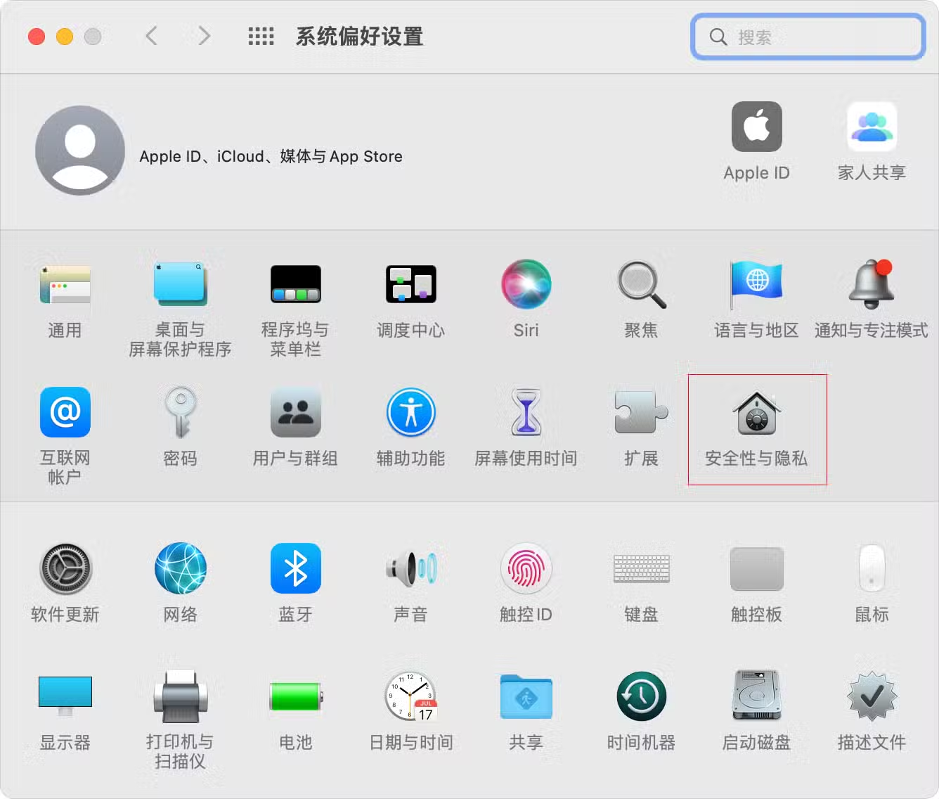 然后打开“系统偏好设置” -> “安全性与隐私” 。