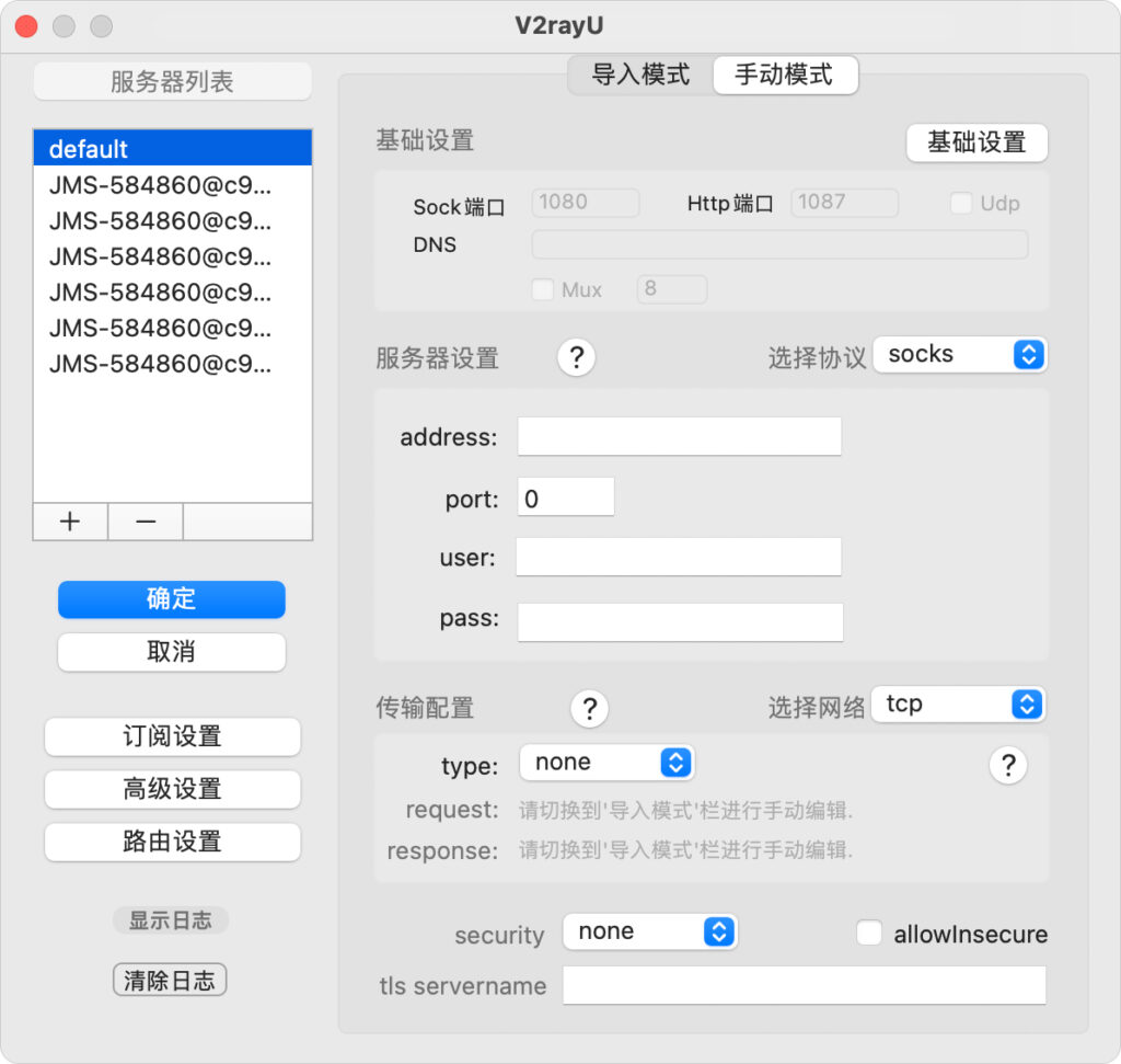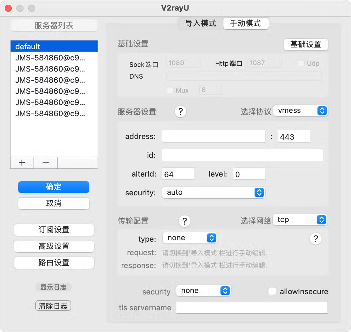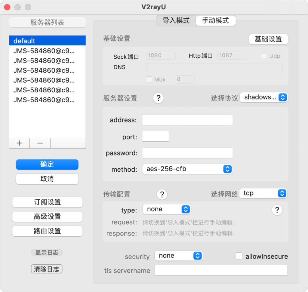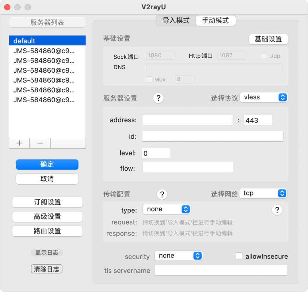 - VMESS服务器即v2Ray节点地址: