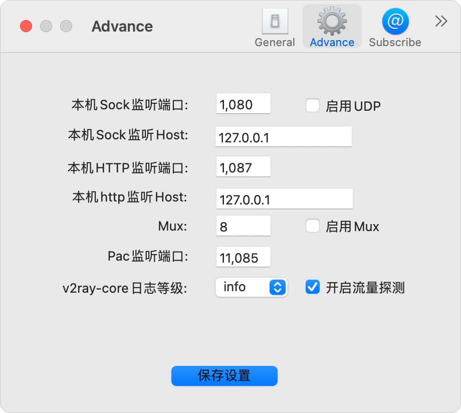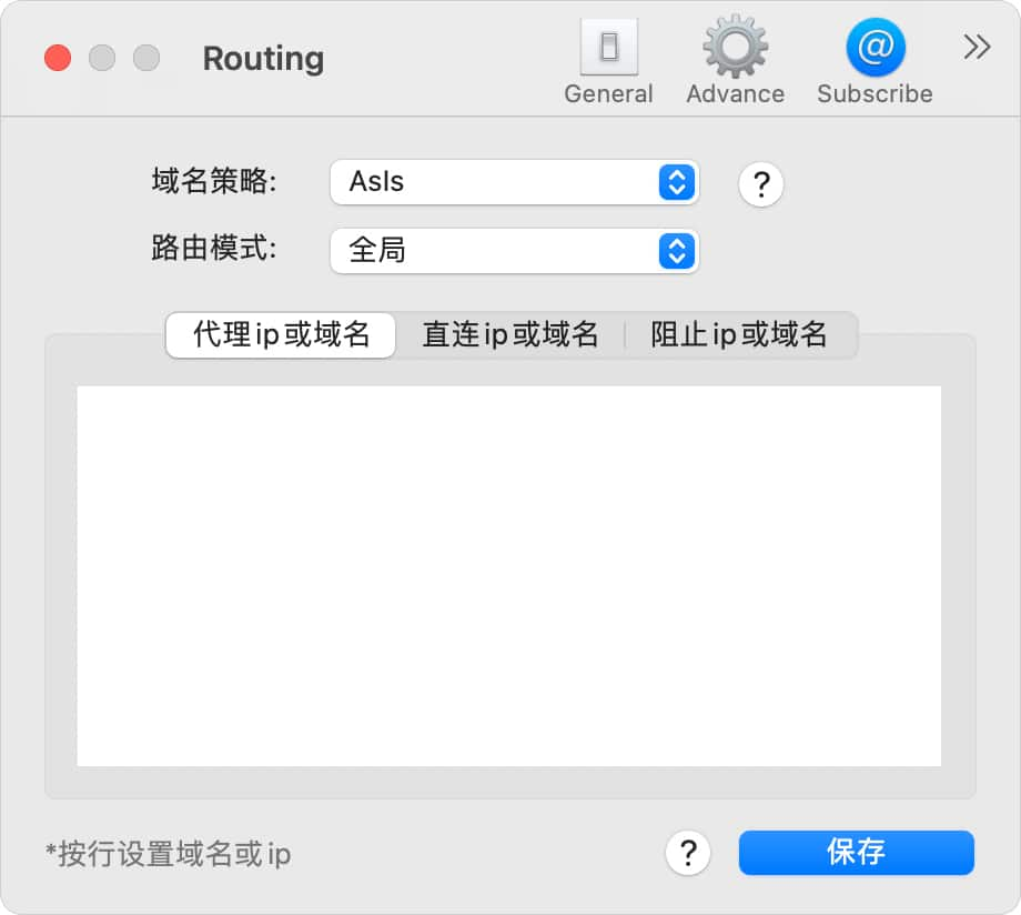 根据不同的需求选择合适的路由模式,一般选择绕过局域网与大陆地址。